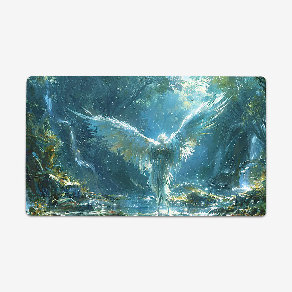 Standard Playmat measures at 24” x 14” inches and is 1/16 of an inch thick. It’s made with a smooth cloth top and strong rubber backing.