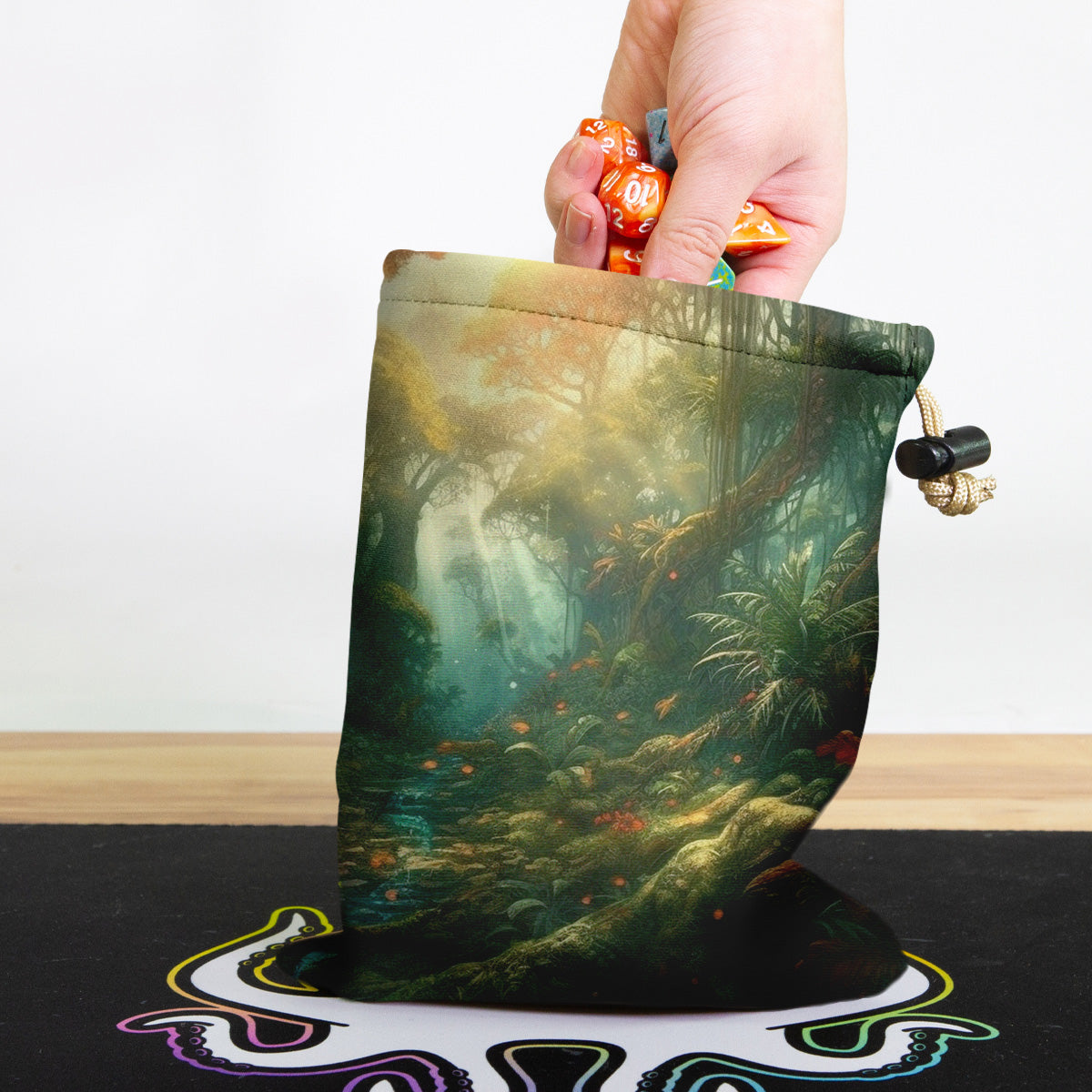 Natural Nexus DesignsAlways gaming on the go? Carry everything you need and more using our specially crafted dice bag. But this bag is designed to hold more than just dice. We make it so you can carry other essential accessories and gear with your dice, including deck boxes, life counters, extra sleeves, and pens. Quality is just as important as quantity, which is why our dice bags are crafted using premium material as well. Featuring a soft inner lining and microfiber on the inside and vibrant pre-designed artwork on the outside, our dice bag has an amazing look and feel to it!