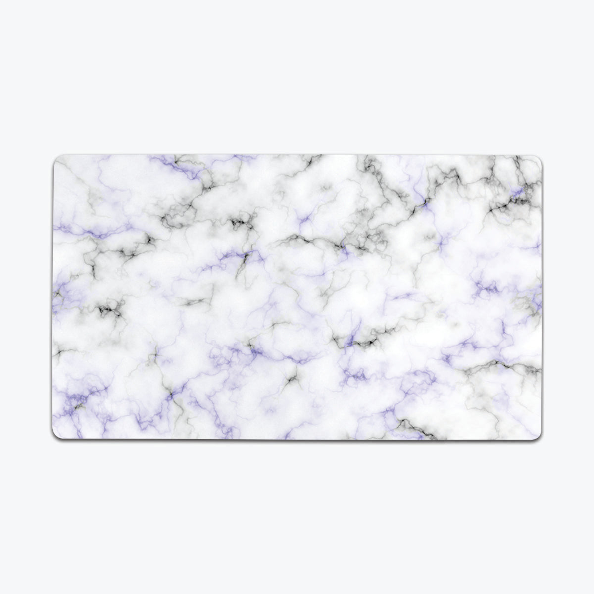 Oversized Playmat measures at 28” x 14” inches and is 1/16 of an inch thick. It’s made with a smooth cloth top and strong rubber backing.