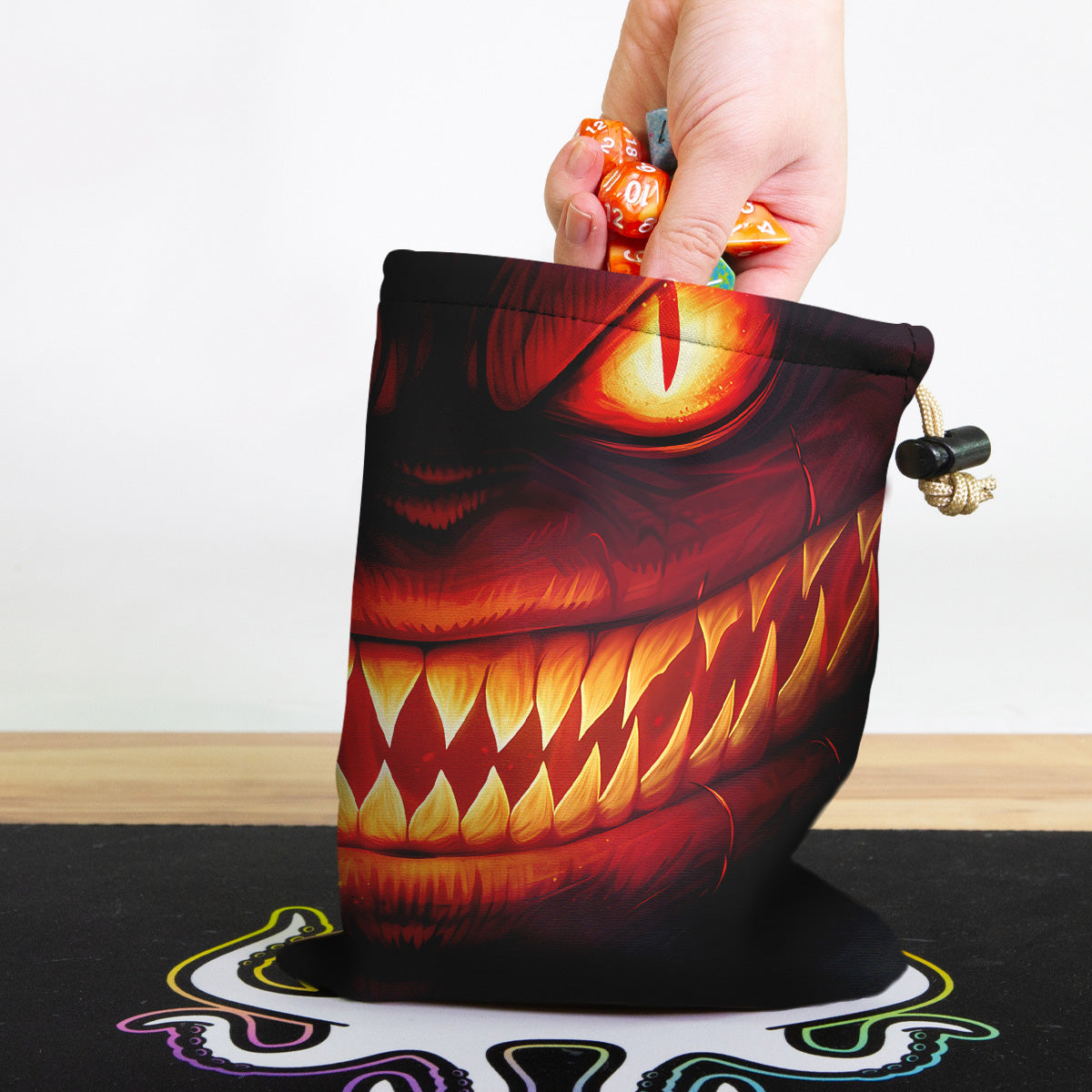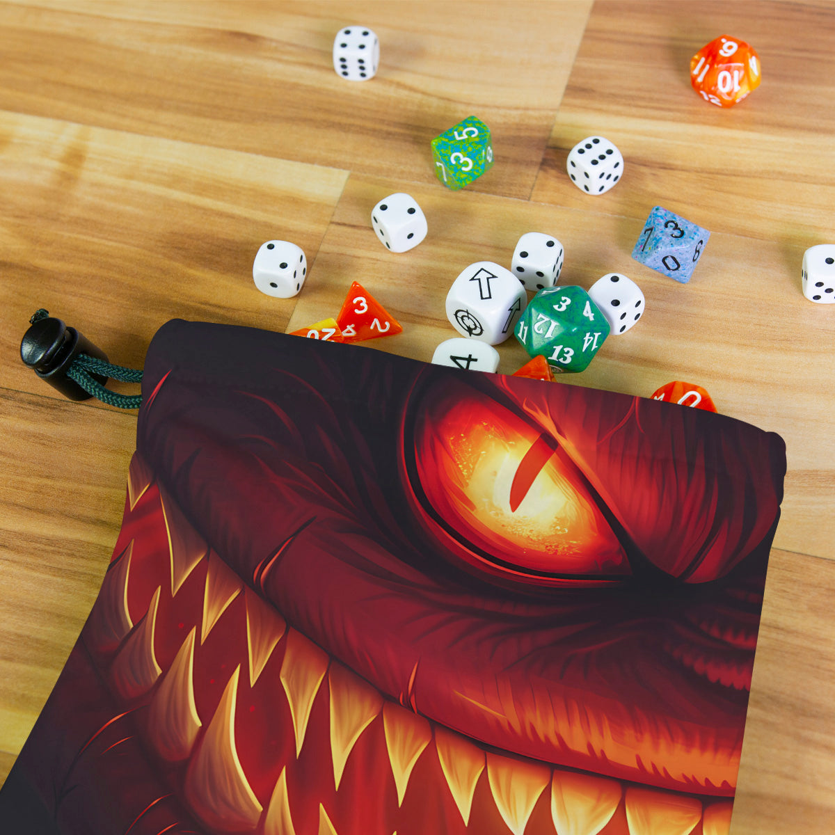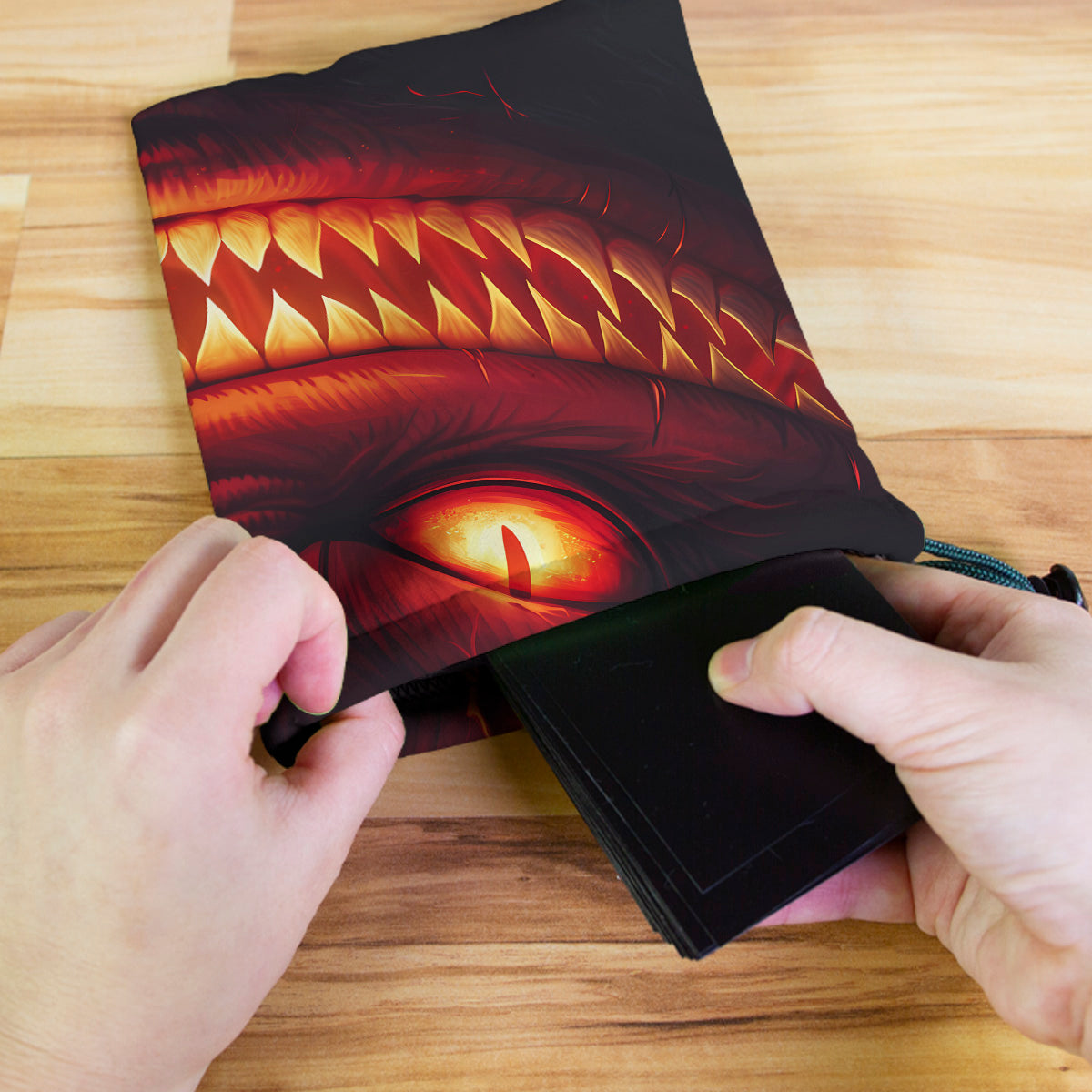 Always gaming on the go? Carry everything you need and more using our specially crafted dice bag. But this bag is designed to hold more than just dice. We make it so you can carry other essential accessories and gear with your dice, including deck boxes, life counters, extra sleeves, and pens. Quality is just as important as quantity, which is why our dice bags are crafted using premium material as well. Featuring a soft inner lining and microfiber on the inside and vibrant pre-designed artwork on the outside, our dice bag has an amazing look and feel to it!