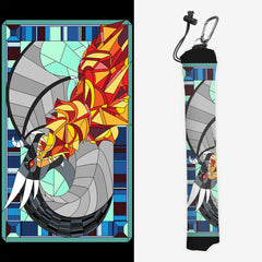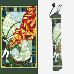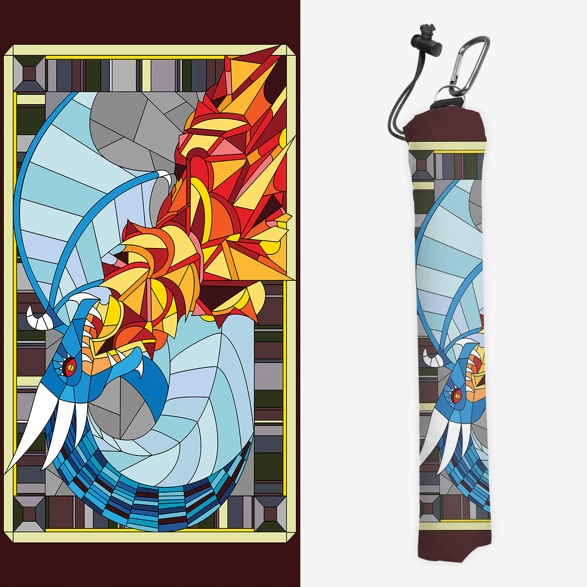 Playmat Bags are specifically designed to hold your mats in style. They are large enough to carry up to two mats. They are coated to be water resistant and include a strap with carabiner for carrying on your backpack. Our bags are hand made in house, and to order. A design that is vertical or patterned would be best for this type of product.