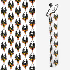 Playmat Bags are specifically designed to hold your mats in style. They are large enough to carry up to two mats. They are coated to be water resistant and include a strap with carabiner for carrying on your backpack. Our bags are hand made in house, and to order. A design that is vertical or patterned would be best for this type of product.