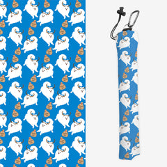 Playmat Bags are specifically designed to hold your mats in style. They are large enough to carry up to two mats. They are coated to be water resistant and include a strap with carabiner for carrying on your backpack. Our bags are hand made in house, and to order. A design that is vertical or patterned would be best for this type of product.