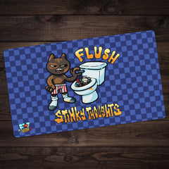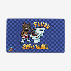 Standard Playmat measures at 24” x 14” inches and is 1/16 of an inch thick. It’s made with a smooth cloth top and strong rubber backing.