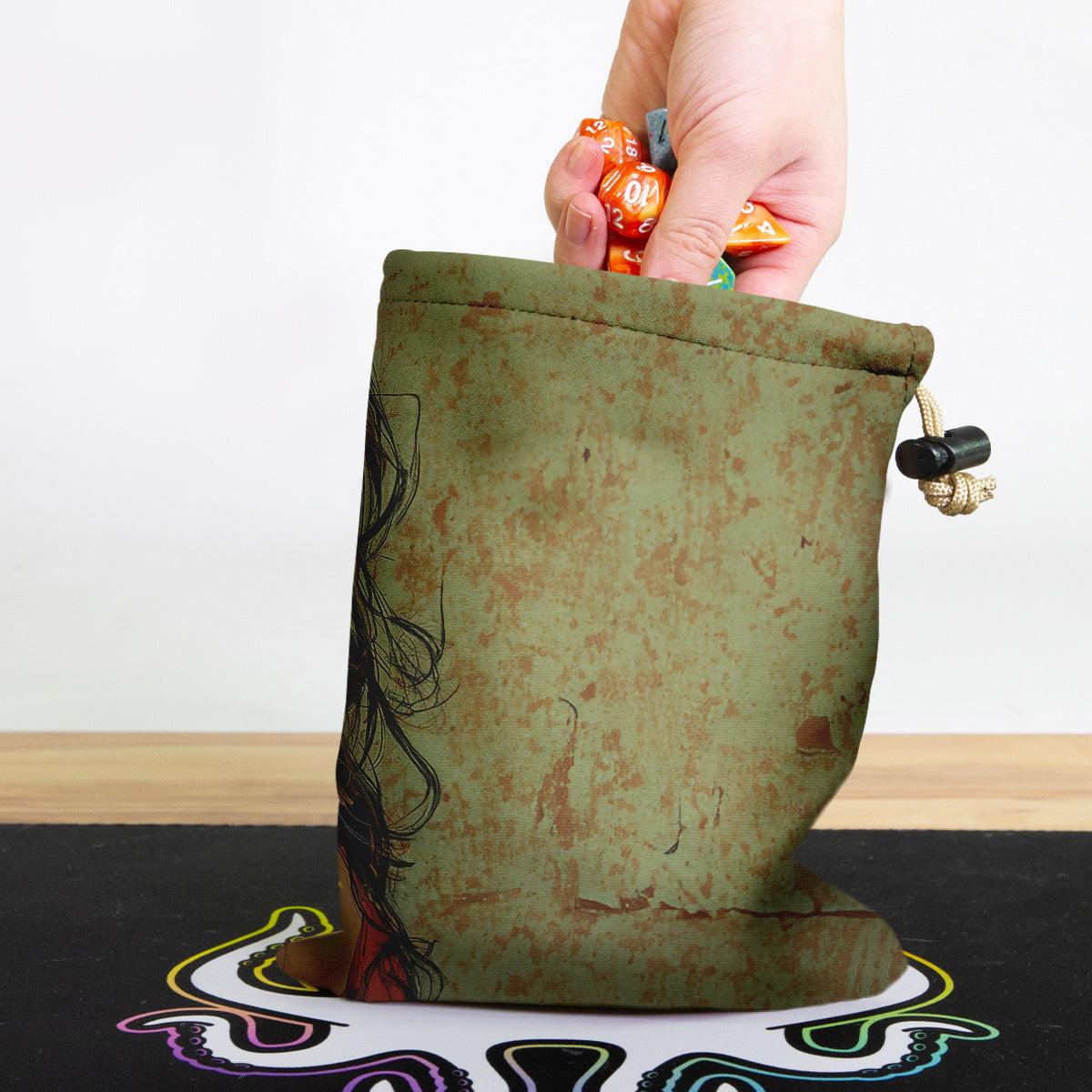 KnerdedAlways gaming on the go? Carry everything you need and more using our specially crafted dice bag. But this bag is designed to hold more than just dice. We make it so you can carry other essential accessories and gear with your dice, including deck boxes, life counters, extra sleeves, and pens. Quality is just as important as quantity, which is why our dice bags are crafted using premium material as well. Featuring a soft inner lining and microfiber on the inside and vibrant pre-designed artwork on the outside, our dice bag has an amazing look and feel to it!