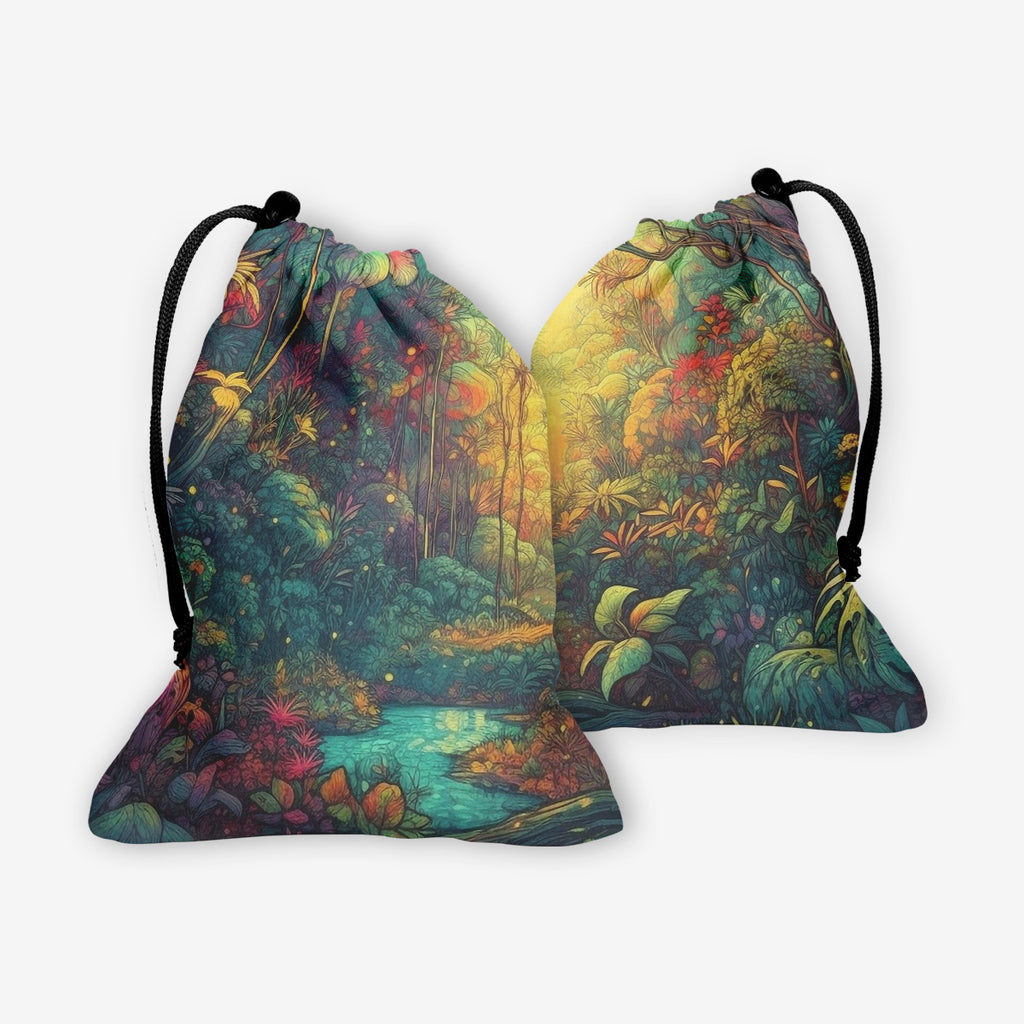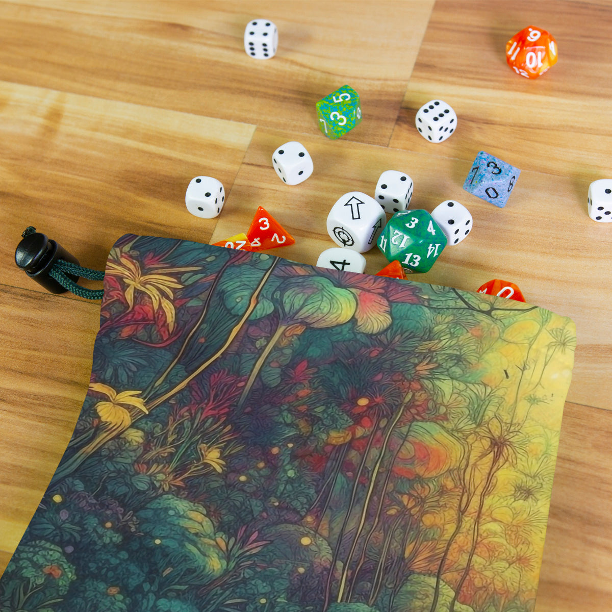 Natural Nexus DesignsAlways gaming on the go? Carry everything you need and more using our specially crafted dice bag. But this bag is designed to hold more than just dice. We make it so you can carry other essential accessories and gear with your dice, including deck boxes, life counters, extra sleeves, and pens. Quality is just as important as quantity, which is why our dice bags are crafted using premium material as well. Featuring a soft inner lining and microfiber on the inside and vibrant pre-designed artwork on the outside, our dice bag has an amazing look and feel to it!