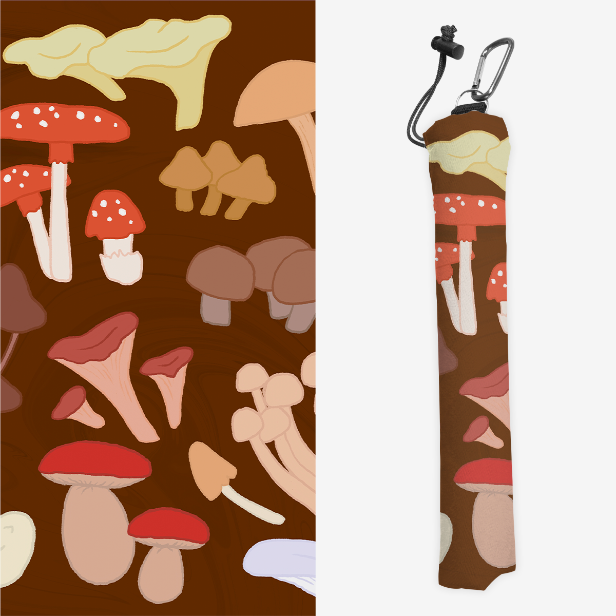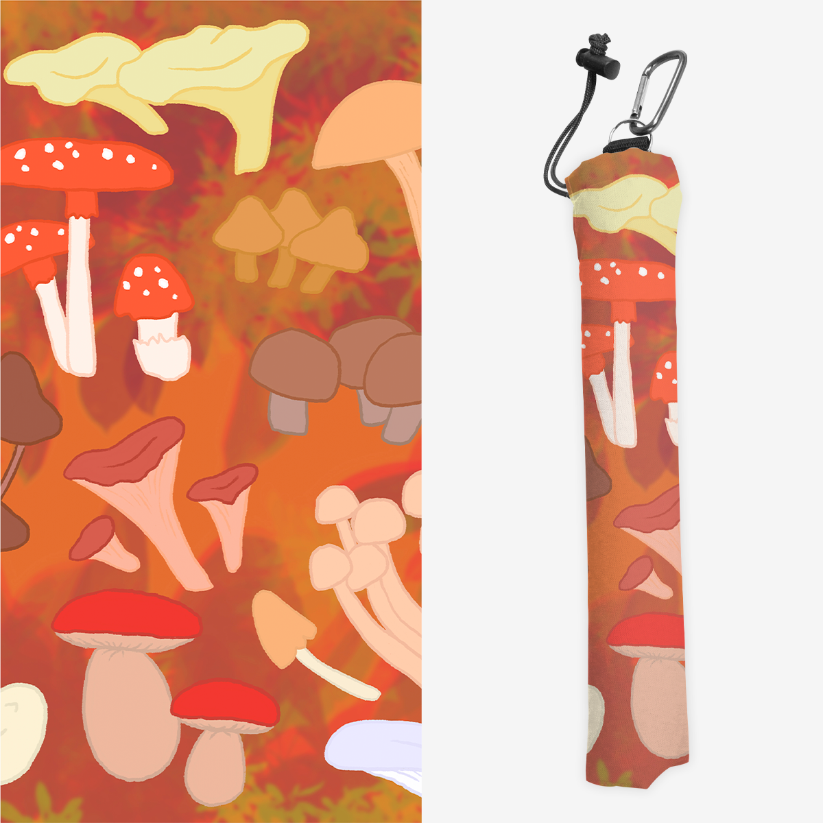 Playmat Bags are specifically designed to hold your mats in style. They are large enough to carry up to two mats. They are coated to be water resistant and include a strap with carabiner for carrying on your backpack. Our bags are hand made in house, and to order. A design that is vertical or patterned would be best for this type of product.