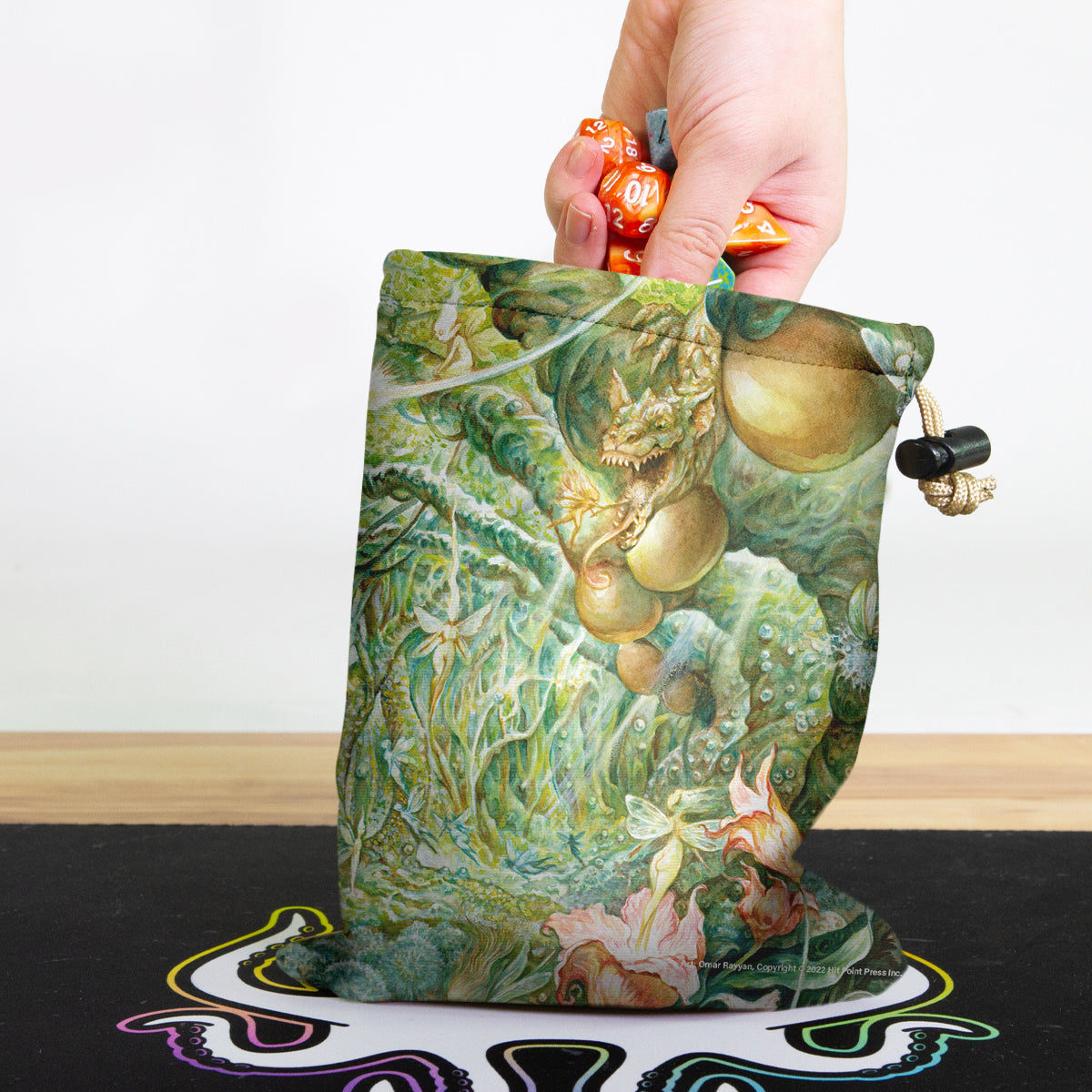 Always gaming on the go? Carry everything you need and more using our specially crafted dice bag. But this bag is designed to hold more than just dice. We make it so you can carry other essential accessories and gear with your dice, including deck boxes, life counters, extra sleeves, and pens. Quality is just as important as quantity, which is why our dice bags are crafted using premium material as well. Featuring a soft inner lining and microfiber on the inside and vibrant pre-designed artwork on the outside, our dice bag has an amazing look and feel to it!