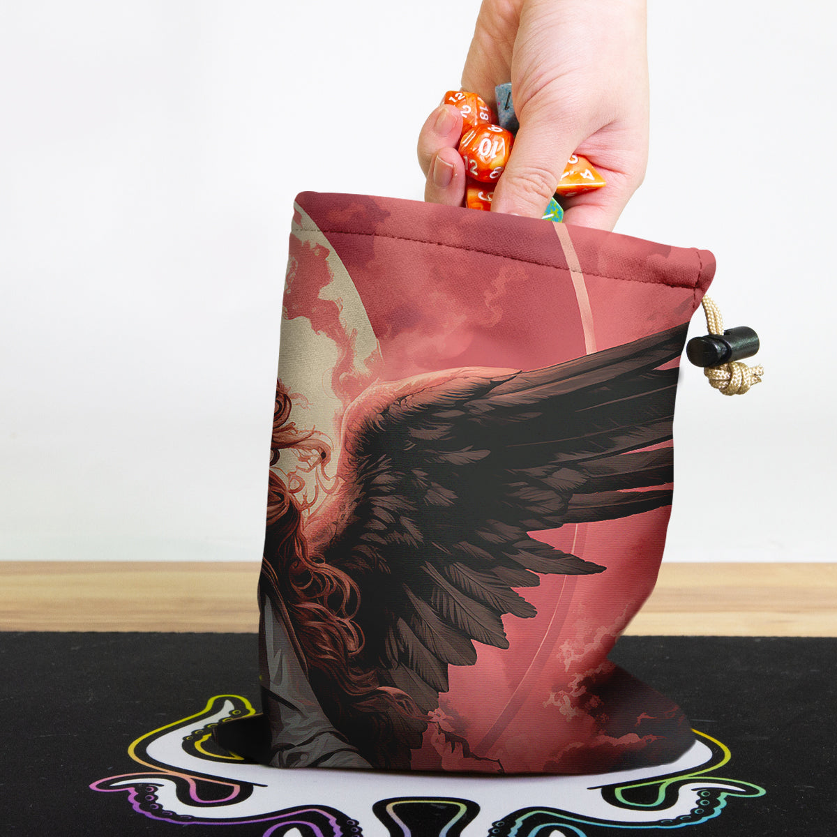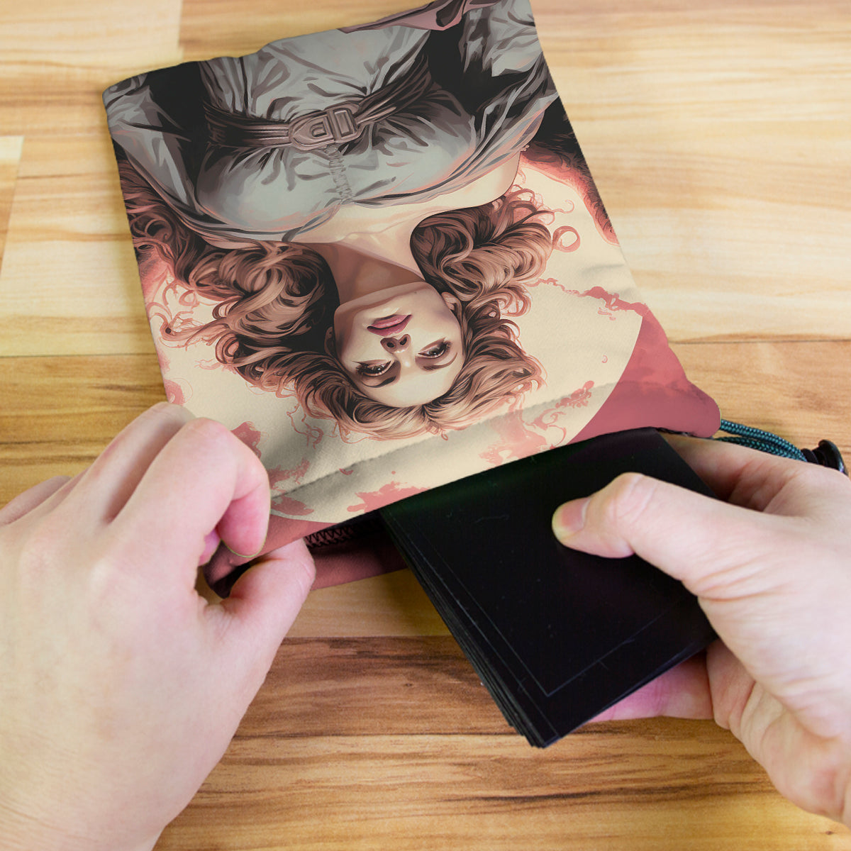 KnerdedAlways gaming on the go? Carry everything you need and more using our specially crafted dice bag. But this bag is designed to hold more than just dice. We make it so you can carry other essential accessories and gear with your dice, including deck boxes, life counters, extra sleeves, and pens. Quality is just as important as quantity, which is why our dice bags are crafted using premium material as well. Featuring a soft inner lining and microfiber on the inside and vibrant pre-designed artwork on the outside, our dice bag has an amazing look and feel to it!