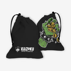 Kaizoku Bootleg ParaphernaliaAlways gaming on the go? Carry everything you need and more using our specially crafted dice bag. But this bag is designed to hold more than just dice. We make it so you can carry other essential accessories and gear with your dice, including deck boxes, life counters, extra sleeves, and pens. Quality is just as important as quantity, which is why our dice bags are crafted using premium material as well. Featuring a soft inner lining and microfiber on the inside and vibrant pre-designed artwork on the outside, our dice bag has an amazing look and feel to it!