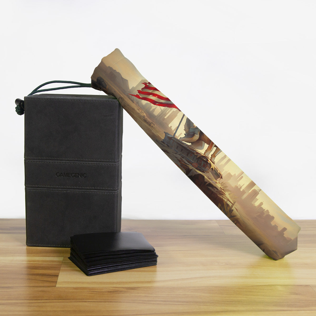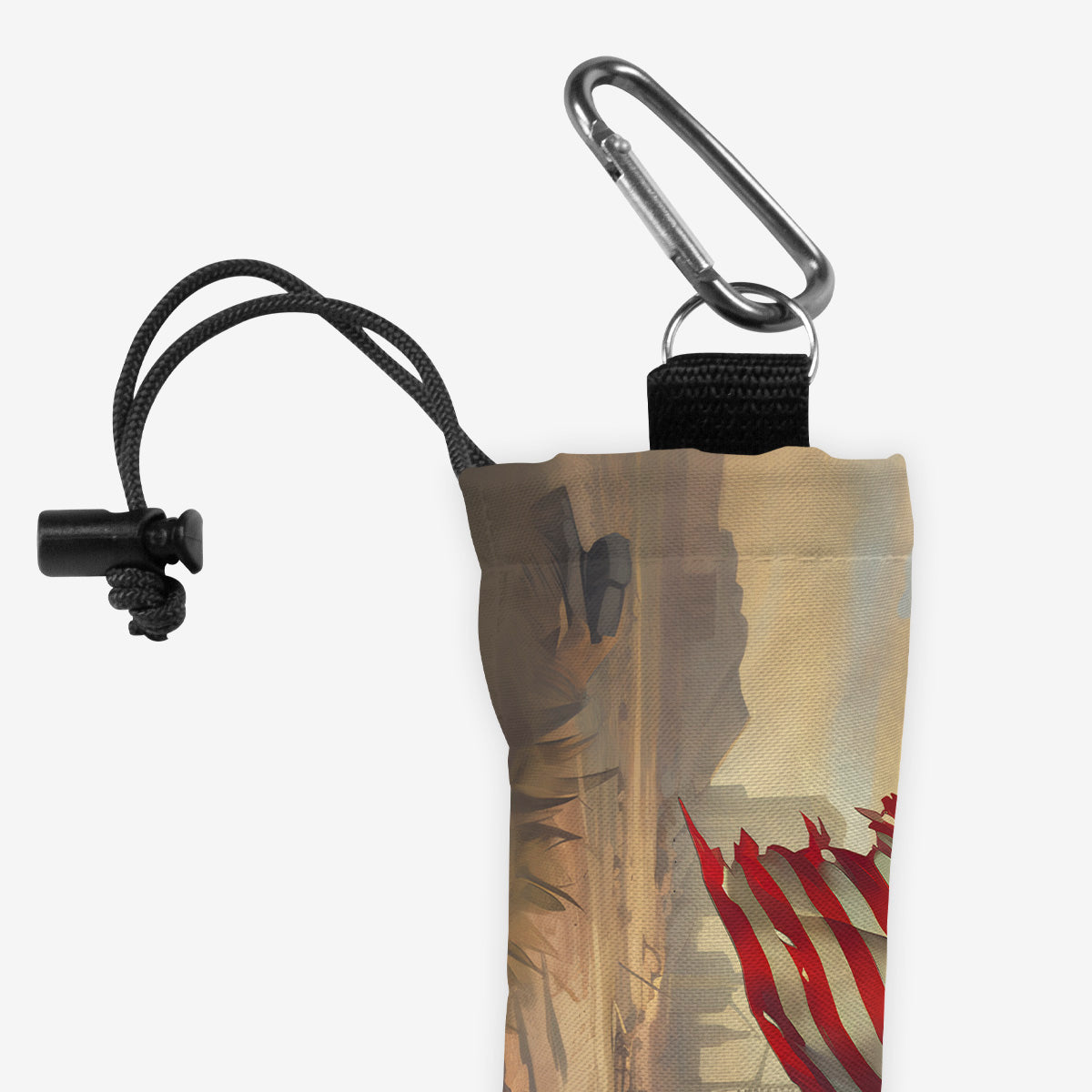Keep your playmat in pristine condition wherever you go with one of our handcrafted playmat bags. This playmat bag is specifically designed to protect your playmat and can hold two standard sized mats at the same time (in case you need a backup or your friend forgets theirs). Each bag is made in-house and features a water-resistant coating along with a drawstring and carabiner clip for secure carrying. So you can take your game anywhere and in any weather.