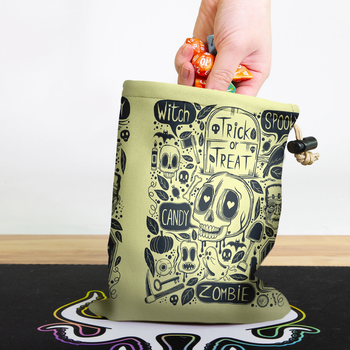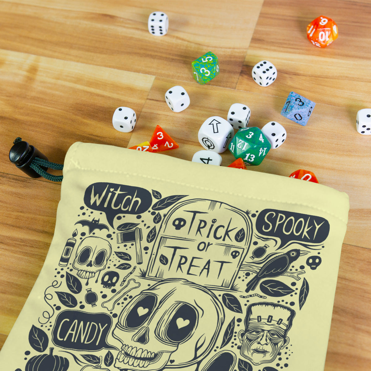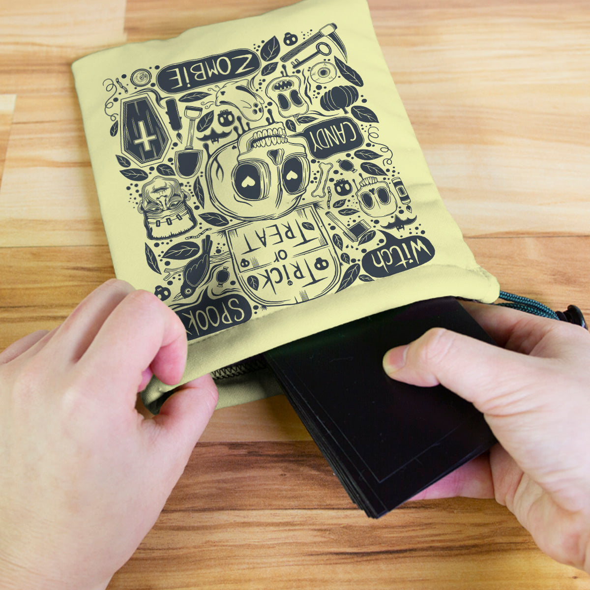 Always gaming on the go? Carry everything you need and more using our specially crafted dice bag. But this bag is designed to hold more than just dice. We make it so you can carry other essential accessories and gear with your dice, including deck boxes, life counters, extra sleeves, and pens. Quality is just as important as quantity, which is why our dice bags are crafted using premium material as well. Featuring a soft inner lining and microfiber on the inside and vibrant pre-designed artwork on the outside, our dice bag has an amazing look and feel to it!
