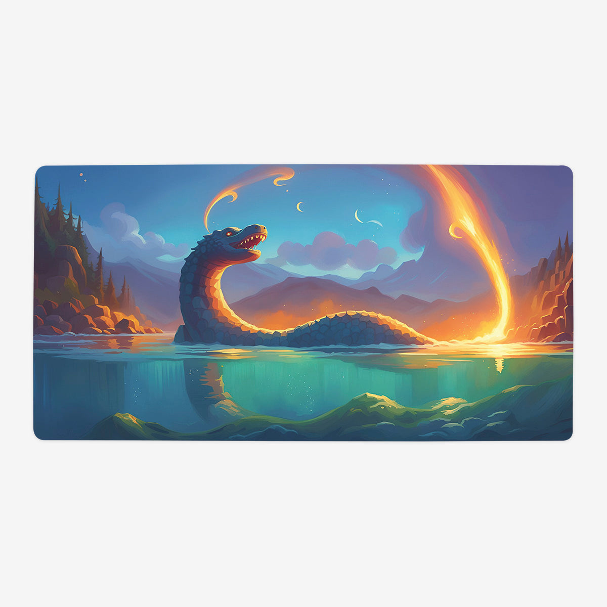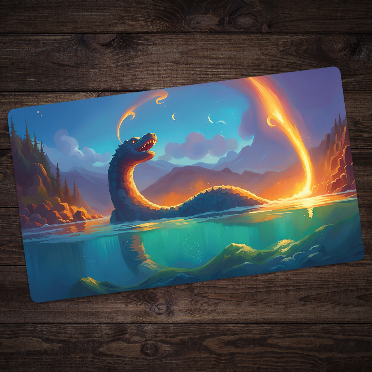 Oversized Playmat measures at 28” x 14” inches and is 1/16 of an inch thick. It’s made with a smooth cloth top and strong rubber backing.