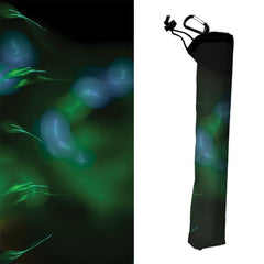 Playmat Bags are specifically designed to hold your mats in style. They are large enough to carry up to two mats. They are coated to be water resistant and include a strap with carabiner for carrying on your backpack. Our bags are hand made in house, and to order. A design that is vertical or patterned would be best for this type of product.