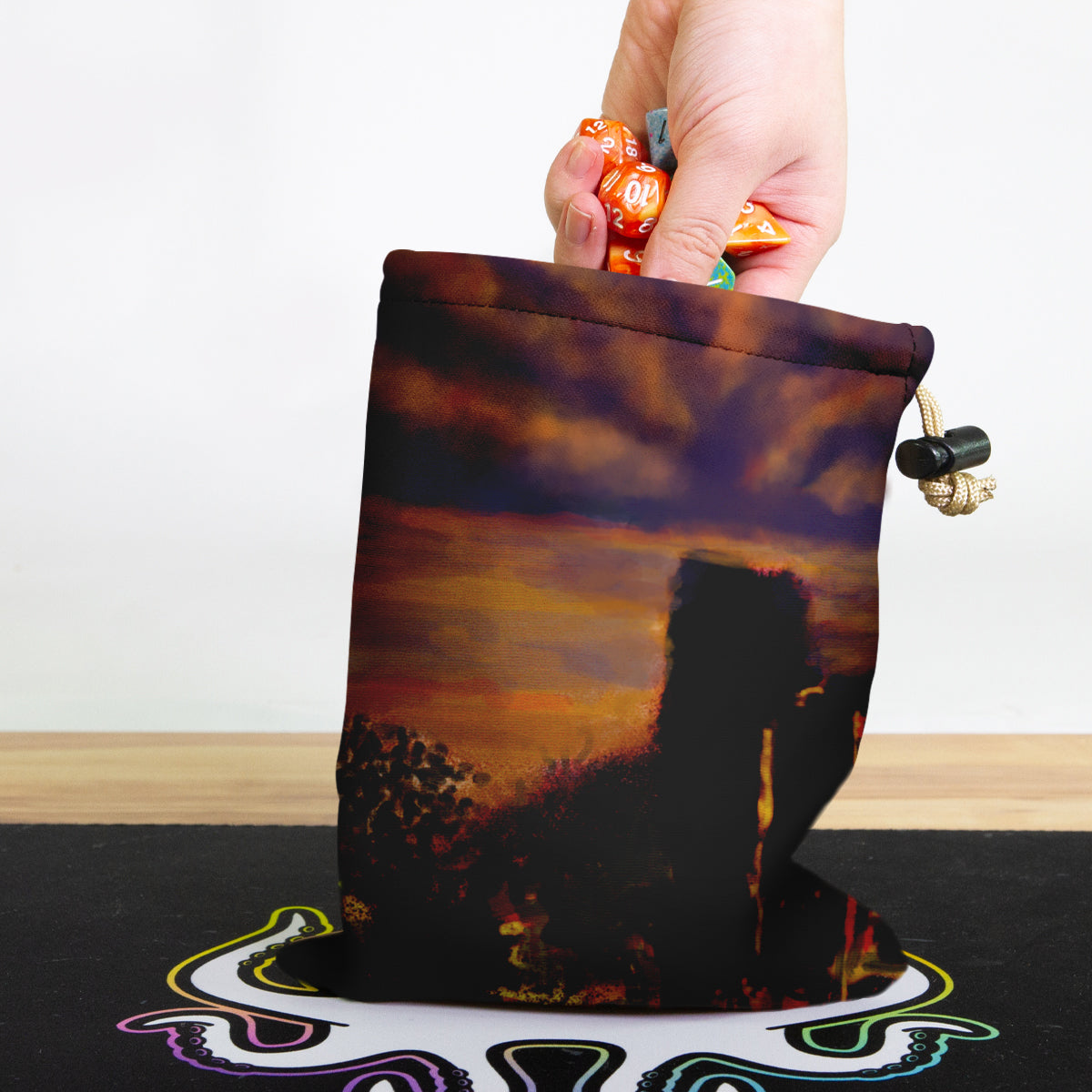 Anne-KristelAlways gaming on the go? Carry everything you need and more using our specially crafted dice bag. But this bag is designed to hold more than just dice. We make it so you can carry other essential accessories and gear with your dice, including deck boxes, life counters, extra sleeves, and pens. Quality is just as important as quantity, which is why our dice bags are crafted using premium material as well. Featuring a soft inner lining and microfiber on the inside and vibrant pre-designed artwork on the outside, our dice bag has an amazing look and feel to it!