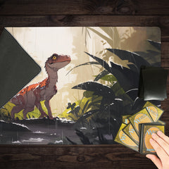 Oversized Playmat measures at 28” x 14” inches and is 1/16 of an inch thick. It’s made with a smooth cloth top and strong rubber backing.