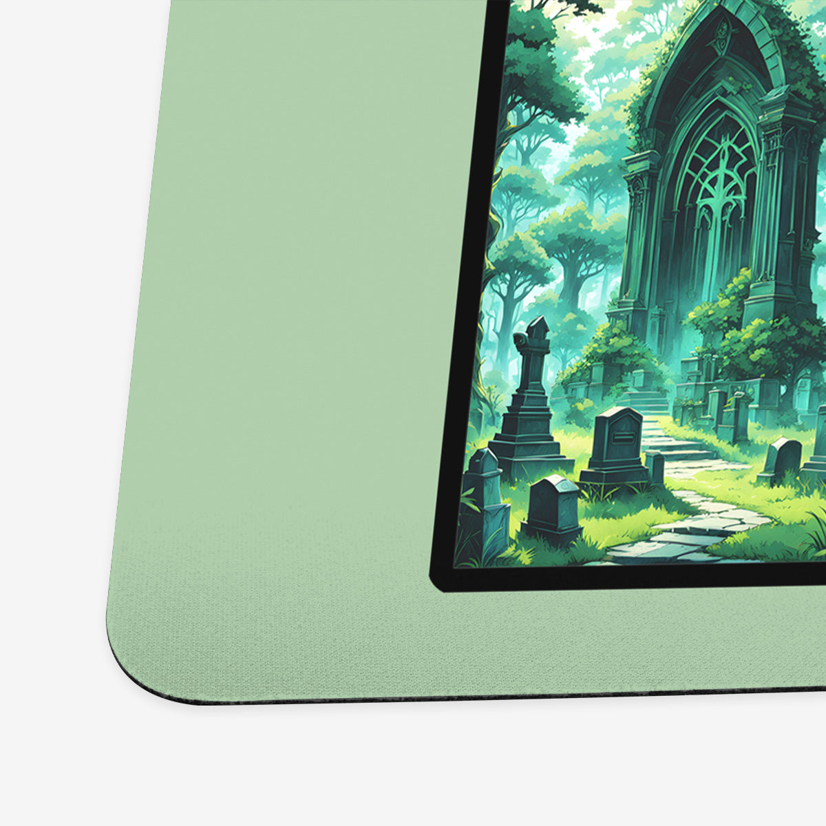 Standard Playmat measures at 24” x 14” inches and is 1/16 of an inch thick. It’s made with a smooth cloth top and strong rubber backing.