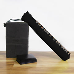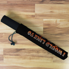Playmat Bags are specifically designed to hold your mats in style. They are large enough to carry up to two mats. They are coated to be water resistant and include a strap with carabiner for carrying on your backpack. Our bags are hand made in house, and to order. A design that is vertical or patterned would be best for this type of product.