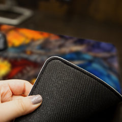Need a new mousepad that features quality craftsmanship and creativity? Then you’ve definitely come to the right place. Our mousepads are made in-house with premium materials and unique artwork that give your battlestation the supreme look and feel that it deserves. The top is made from sleek polyester, which enables faster, more precise mouse movements. This enhanced speed and precision come in handy whether you’re working or gaming. On the bottom, there’s a strong anti-slip rubber backing that holds a nice, tight grip on your desk while you’re doing your thing. The action and traction this pad provides give you a better overall experience in completing daily tasks, deadlines, and missions of all kinds. And because we’ve added more sizing options to it, you no longer have to worry about running out of room at the worst moments either. The sizes are Classic, Large, and XL. The Classic mousepad has unstitched edges. However, the Large mousepad does include stitched edging, while the XL mousepad has both a stitched or unstitched edging option available. You can see the approximate measurements of all those sizes in the details below. We think you’ll be impressed…if you aren’t already!