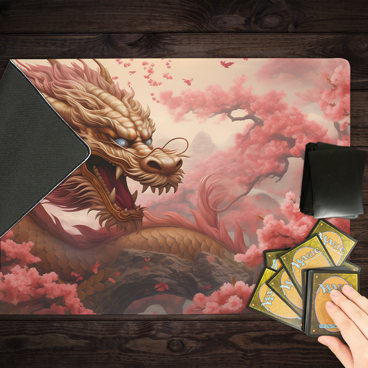 Standard Playmat measures at 24” x 14” inches and is 1/16 of an inch thick. It’s made with a smooth cloth top and strong rubber backing.