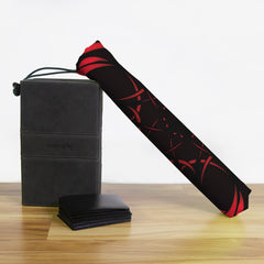 Keep your playmat in pristine condition wherever you go with one of our handcrafted playmat bags. This playmat bag is specifically designed to protect your playmat and can hold two standard sized mats at the same time (in case you need a backup or your friend forgets theirs). Each bag is made in-house and features a water-resistant coating along with a drawstring and carabiner clip for secure carrying. So you can take your game anywhere and in any weather.
