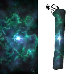 Playmat Bags are specifically designed to hold your mats in style. They are large enough to carry up to two mats. They are coated to be water resistant and include a strap with carabiner for carrying on your backpack. Our bags are hand made in house, and to order. A design that is vertical or patterned would be best for this type of product.
