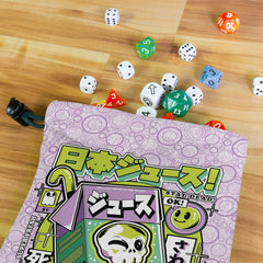 Squeeze some style into your gaming sessions with Ilustrata’s Japanese Juice dice bag! This bag isn't just about keeping your dice safe – it's a burst of vibrant energy that infuses your game with a pop of fresh flair. Imagine the sweet concoctions of colorful juices blending seamlessly with your dice, creating a symphony of excitement. Whether you're summoning creatures in D&D or casting spells in MTG, let this bag be your source of inspiration and luck. Get ready to pour your gaming passion into every roll and revel in the fruitful taste of victory!