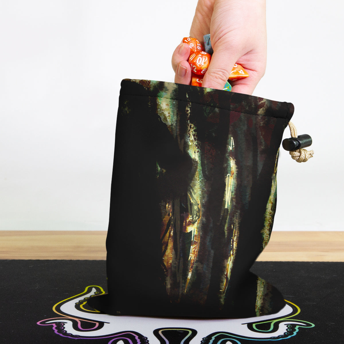 Anne-KristelAlways gaming on the go? Carry everything you need and more using our specially crafted dice bag. But this bag is designed to hold more than just dice. We make it so you can carry other essential accessories and gear with your dice, including deck boxes, life counters, extra sleeves, and pens. Quality is just as important as quantity, which is why our dice bags are crafted using premium material as well. Featuring a soft inner lining and microfiber on the inside and vibrant pre-designed artwork on the outside, our dice bag has an amazing look and feel to it!