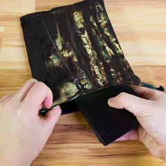Always gaming on the go? Carry everything you need and more using our specially crafted dice bag. But this bag is designed to hold more than just dice. We make it so you can carry other essential accessories and gear with your dice, including deck boxes, life counters, extra sleeves, and pens. Quality is just as important as quantity, which is why our dice bags are crafted using premium material as well. Featuring a soft inner lining and microfiber on the inside and vibrant pre-designed artwork on the outside, our dice bag has an amazing look and feel to it!