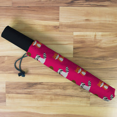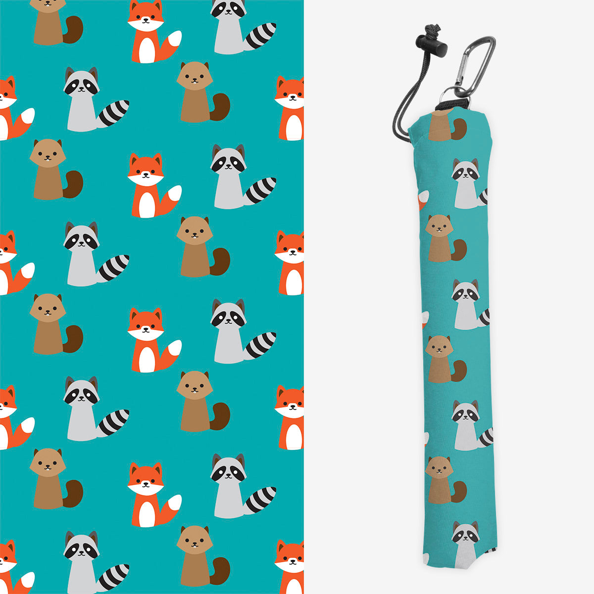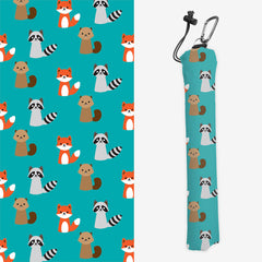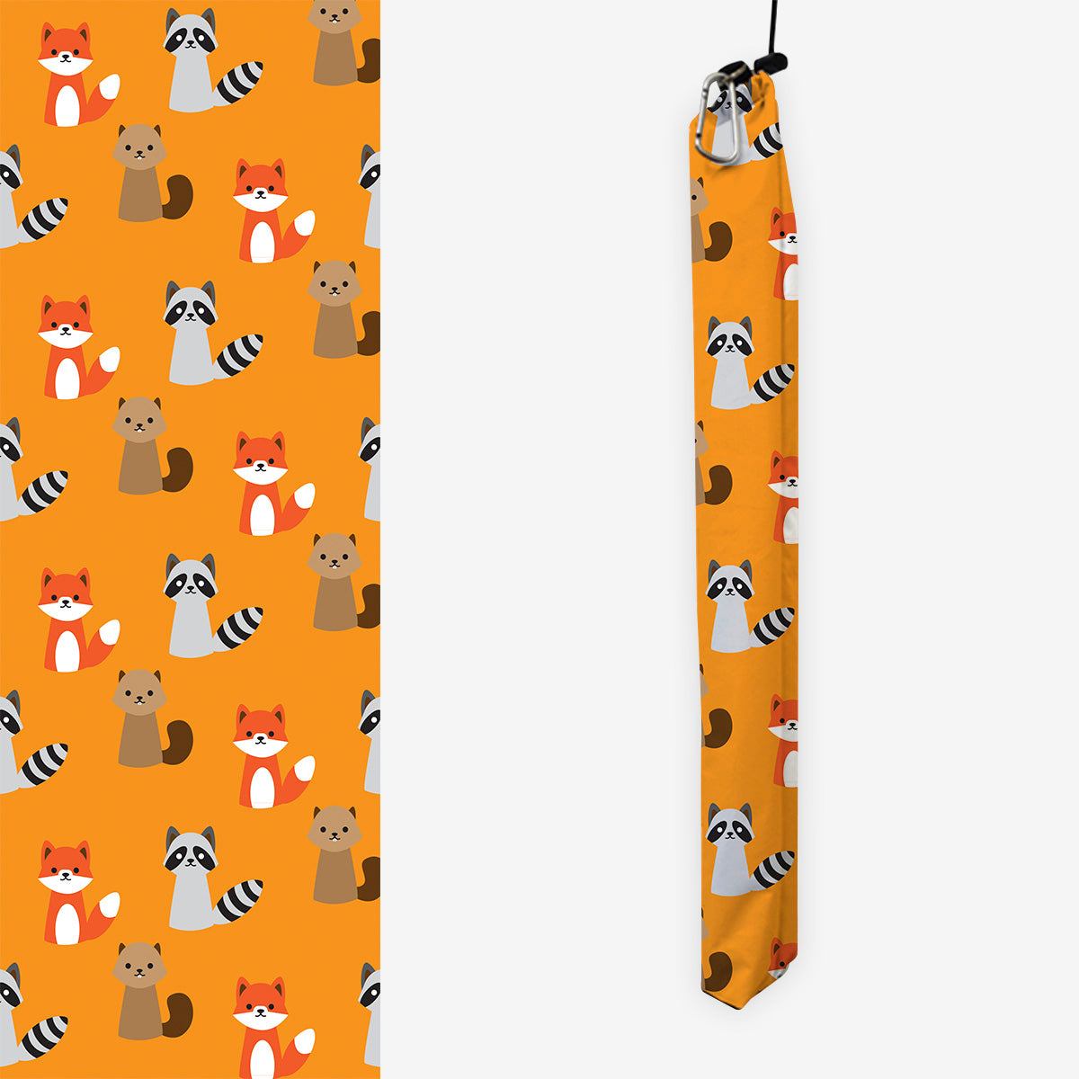 Playmat Bags are specifically designed to hold your mats in style. They are large enough to carry up to two mats. They are coated to be water resistant and include a strap with carabiner for carrying on your backpack. Our bags are hand made in house, and to order. A design that is vertical or patterned would be best for this type of product.