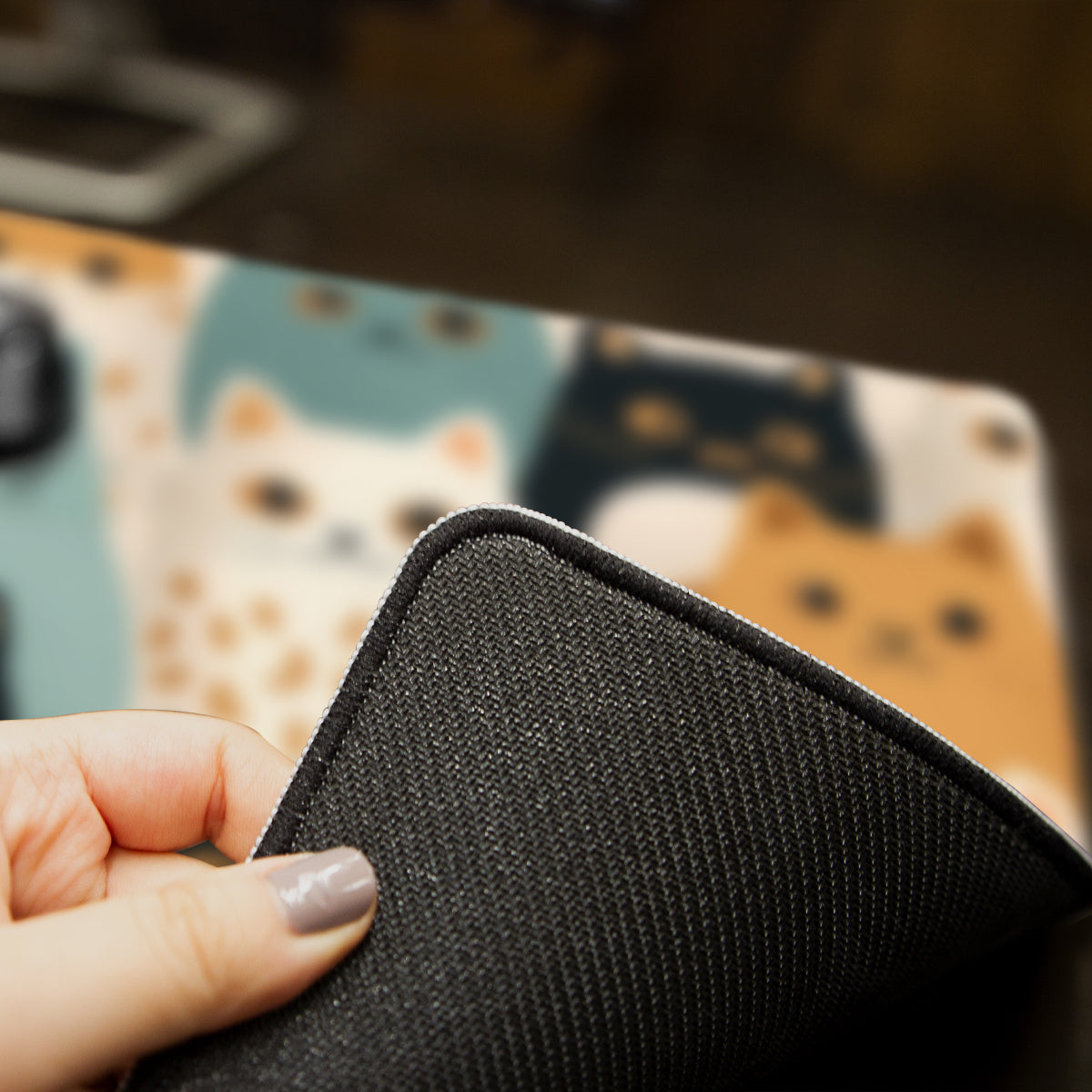 Need a new mousepad that features quality craftsmanship and creativity? Then you’ve definitely come to the right place. Our mousepads are made in-house with premium materials and unique artwork that give your battlestation the supreme look and feel that it deserves. The top is made from sleek polyester, which enables faster, more precise mouse movements. This enhanced speed and precision come in handy whether you’re working or gaming. On the bottom, there’s a strong anti-slip rubber backing that holds a nice, tight grip on your desk while you’re doing your thing. The action and traction this pad provides give you a better overall experience in completing daily tasks, deadlines, and missions of all kinds. And because we’ve added more sizing options to it, you no longer have to worry about running out of room at the worst moments either. The sizes are Classic, Large, and XL. The Classic mousepad has unstitched edges. However, the Large mousepad does include stitched edging, while the XL mousepad has both a stitched or unstitched edging option available. You can see the approximate measurements of all those sizes in the details below. We think you’ll be impressed…if you aren’t already!