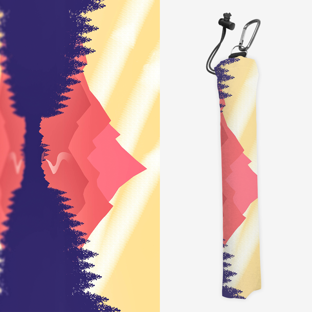 Playmat Bags are specifically designed to hold your mats in style. They are large enough to carry up to two mats. They are coated to be water resistant and include a strap with carabiner for carrying on your backpack. Our bags are hand made in house, and to order. A design that is vertical or patterned would be best for this type of product.