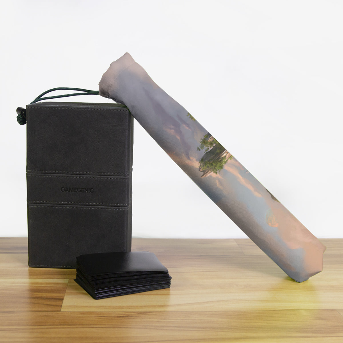 Keep your playmat in pristine condition wherever you go with one of our handcrafted playmat bags. This playmat bag is specifically designed to protect your playmat and can hold two standard sized mats at the same time (in case you need a backup or your friend forgets theirs). Each bag is made in-house and features a water-resistant coating along with a drawstring and carabiner clip for secure carrying. So you can take your game anywhere and in any weather.
