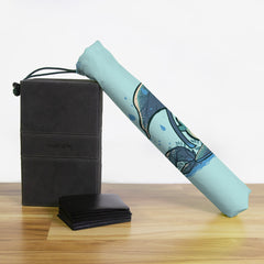 Keep your playmat in pristine condition wherever you go with one of our handcrafted playmat bags. This playmat bag is specifically designed to protect your playmat and can hold two standard sized mats at the same time (in case you need a backup or your friend forgets theirs). Each bag is made in-house and features a water-resistant coating along with a drawstring and carabiner clip for secure carrying. So you can take your game anywhere and in any weather.