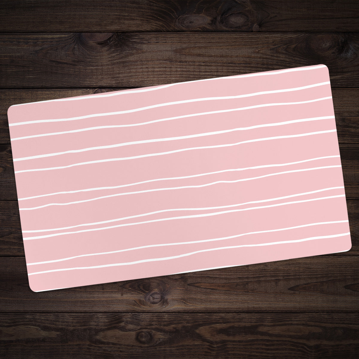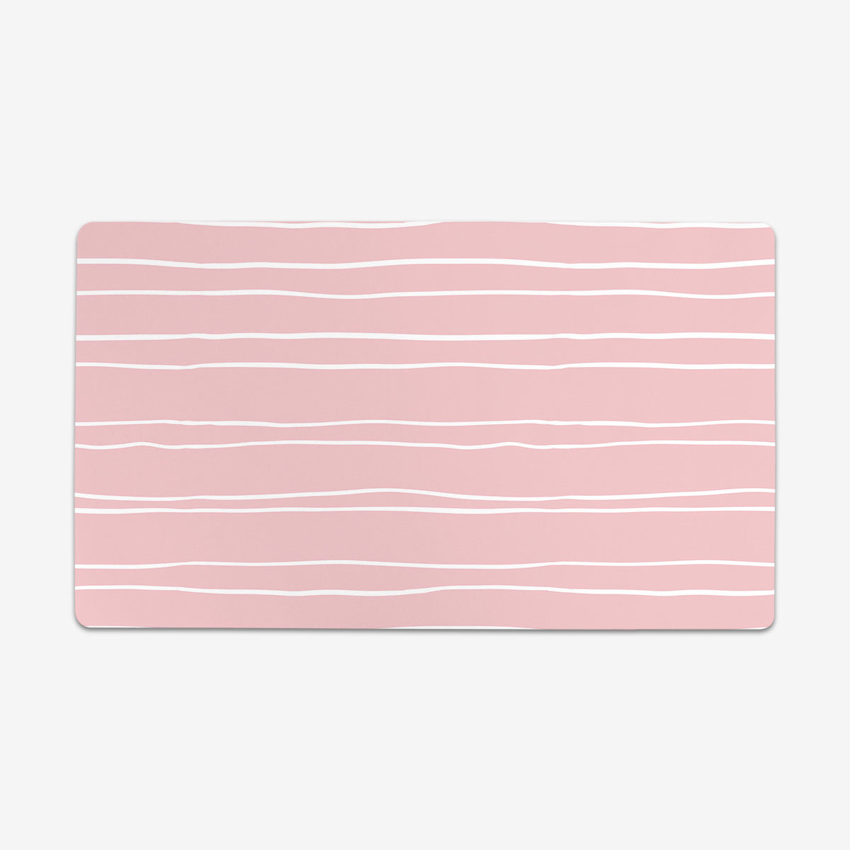 Standard Playmat measures at 24” x 14” inches and is 1/16 of an inch thick. It’s made with a smooth cloth top and strong rubber backing.