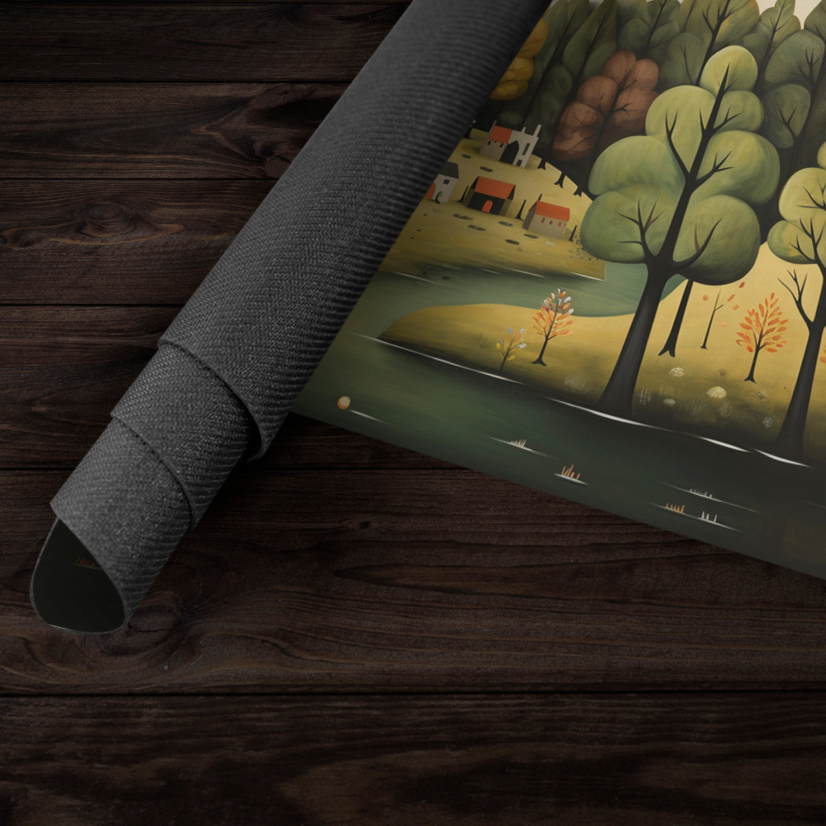 Standard Playmat measures at 24” x 14” inches and is 1/16 of an inch thick. It’s made with a smooth cloth top and strong rubber backing.