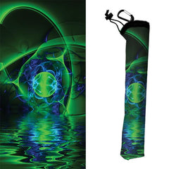 Playmat Bags are specifically designed to hold your mats in style. They are large enough to carry up to two mats. They are coated to be water resistant and include a strap with carabiner for carrying on your backpack. Our bags are hand made in house, and to order. A design that is vertical or patterned would be best for this type of product.