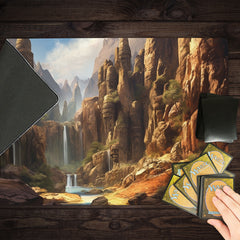 Standard Playmat measures at 24” x 14” inches and is 1/16 of an inch thick. It’s made with a smooth cloth top and strong rubber backing.