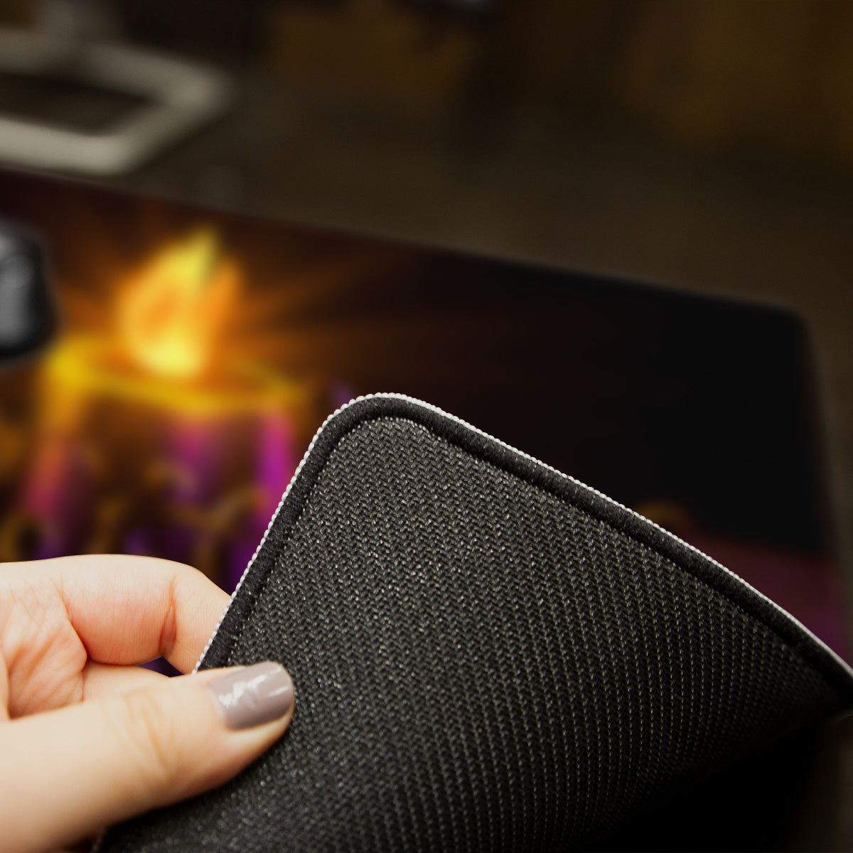 Need a new mousepad that features quality craftsmanship and creativity? Then you’ve definitely come to the right place. Our mousepads are made in-house with premium materials and unique artwork that give your battlestation the supreme look and feel that it deserves. The top is made from sleek polyester, which enables faster, more precise mouse movements. This enhanced speed and precision come in handy whether you’re working or gaming. On the bottom, there’s a strong anti-slip rubber backing that holds a nice, tight grip on your desk while you’re doing your thing. The action and traction this pad provides give you a better overall experience in completing daily tasks, deadlines, and missions of all kinds. And because we’ve added more sizing options to it, you no longer have to worry about running out of room at the worst moments either. The sizes are Classic, Large, and XL. The Classic mousepad has unstitched edges. However, the Large mousepad does include stitched edging, while the XL mousepad has both a stitched or unstitched edging option available. You can see the approximate measurements of all those sizes in the details below. We think you’ll be impressed…if you aren’t already!
