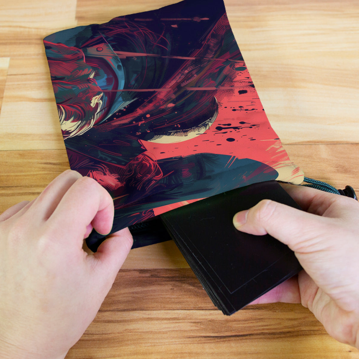 Always gaming on the go? Carry everything you need and more using our specially crafted dice bag. But this bag is designed to hold more than just dice. We make it so you can carry other essential accessories and gear with your dice, including deck boxes, life counters, extra sleeves, and pens. Quality is just as important as quantity, which is why our dice bags are crafted using premium material as well. Featuring a soft inner lining and microfiber on the inside and vibrant pre-designed artwork on the outside, our dice bag has an amazing look and feel to it!