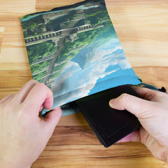 Always gaming on the go? Carry everything you need and more using our specially crafted dice bag. But this bag is designed to hold more than just dice. We make it so you can carry other essential accessories and gear with your dice, including deck boxes, life counters, extra sleeves, and pens. Quality is just as important as quantity, which is why our dice bags are crafted using premium material as well. Featuring a soft inner lining and microfiber on the inside and vibrant pre-designed artwork on the outside, our dice bag has an amazing look and feel to it!