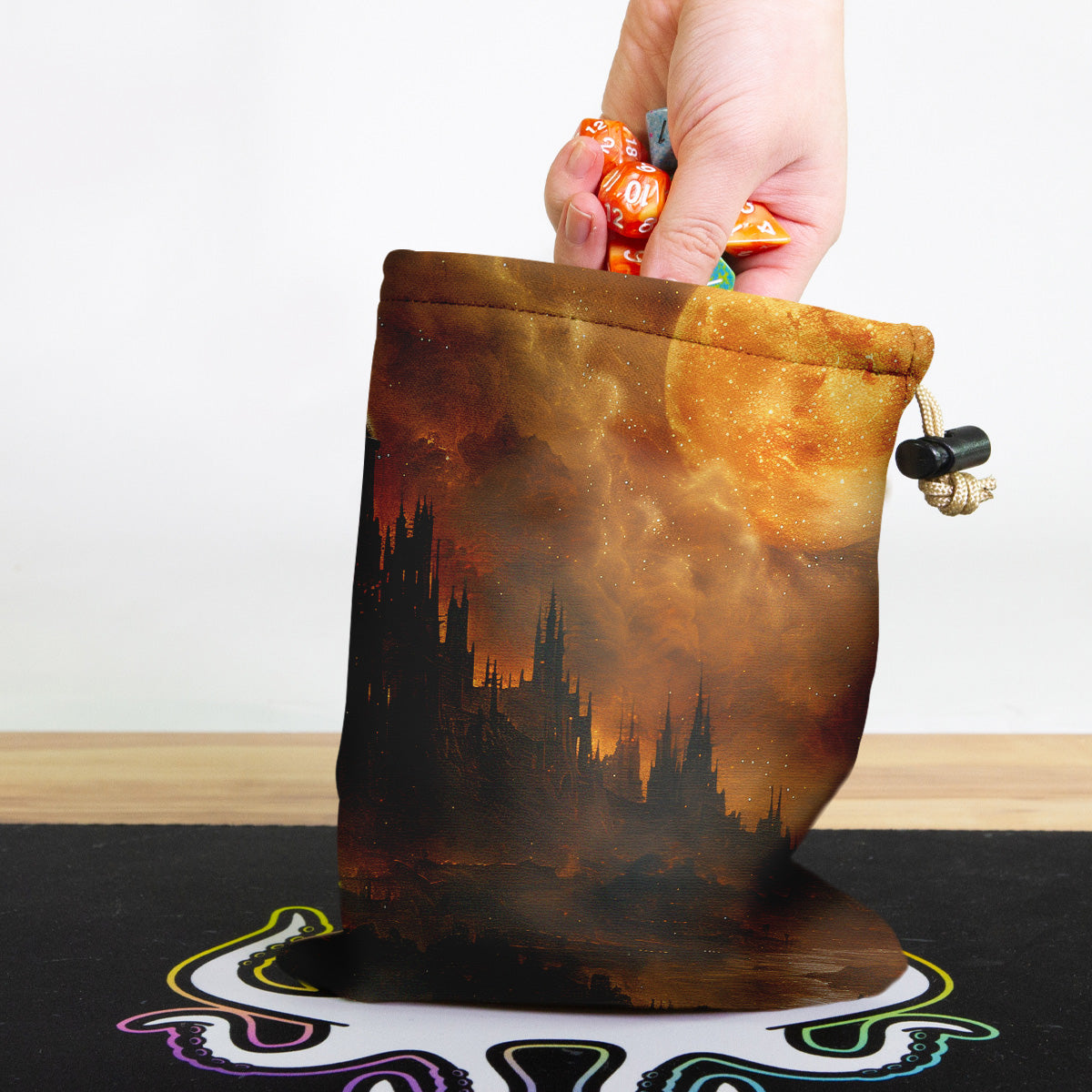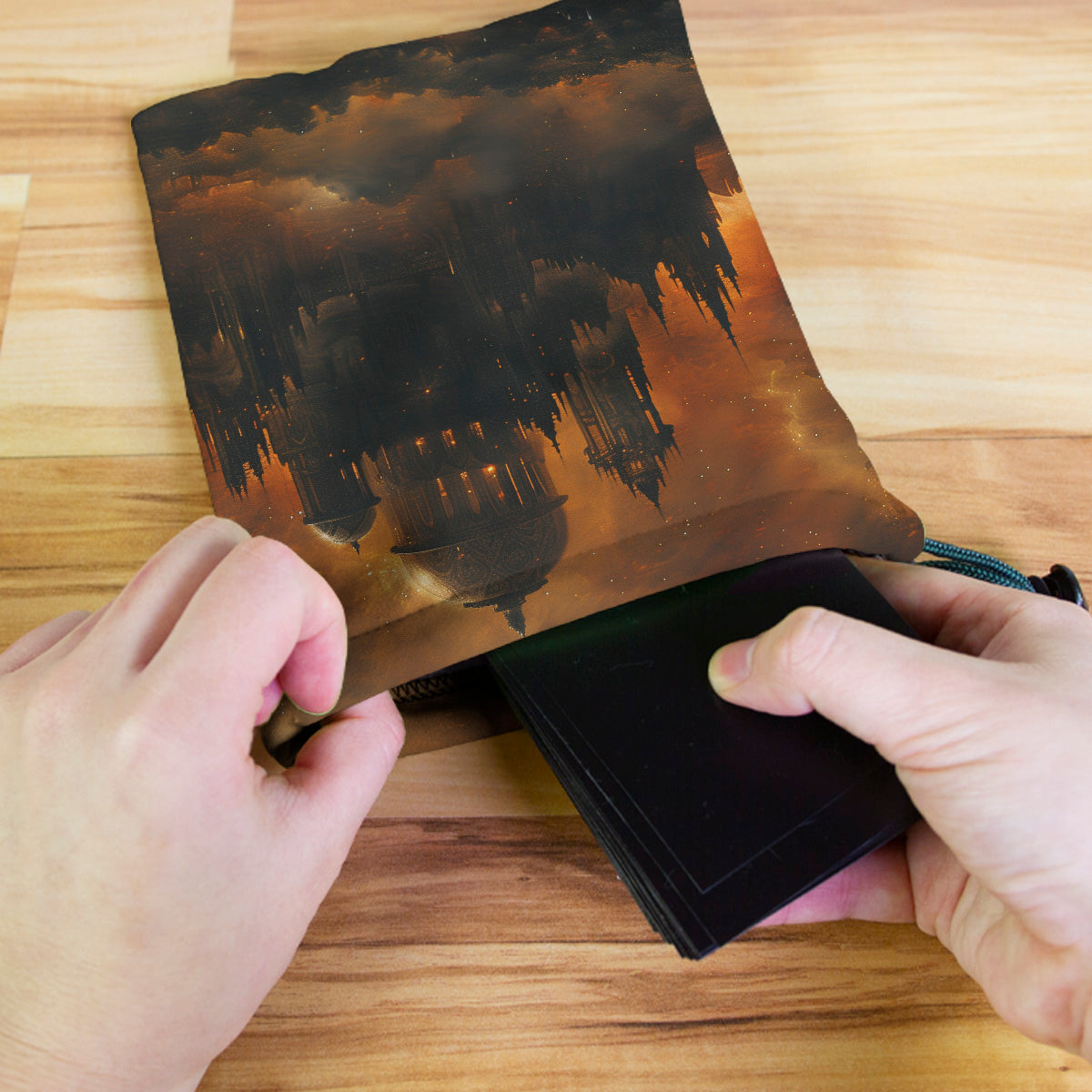 Always gaming on the go? Carry everything you need and more using our specially crafted dice bag. But this bag is designed to hold more than just dice. We make it so you can carry other essential accessories and gear with your dice, including deck boxes, life counters, extra sleeves, and pens. Quality is just as important as quantity, which is why our dice bags are crafted using premium material as well. Featuring a soft inner lining and microfiber on the inside and vibrant pre-designed artwork on the outside, our dice bag has an amazing look and feel to it!