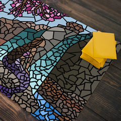 Mermaid Stained Glass with Blossom Trees and Waterfalls Playmat