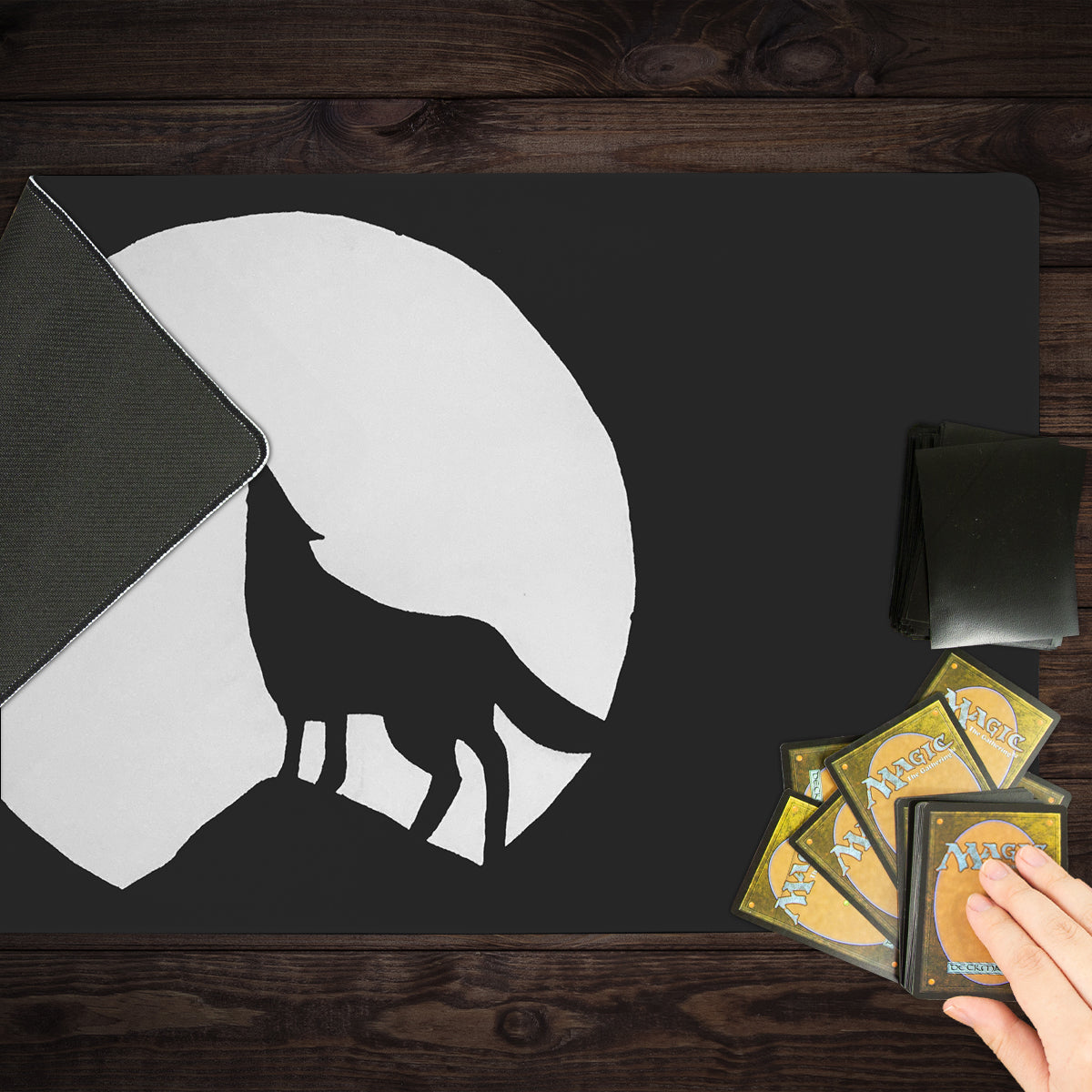 Standard Playmat measures at 24” x 14” inches and is 1/16 of an inch thick. It’s made with a smooth cloth top and strong rubber backing.