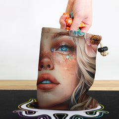 Always gaming on the go? Carry everything you need and more using our specially crafted dice bag. But this bag is designed to hold more than just dice. We make it so you can carry other essential accessories and gear with your dice, including deck boxes, life counters, extra sleeves, and pens. Quality is just as important as quantity, which is why our dice bags are crafted using premium material as well. Featuring a soft inner lining and microfiber on the inside and vibrant pre-designed artwork on the outside, our dice bag has an amazing look and feel to it!