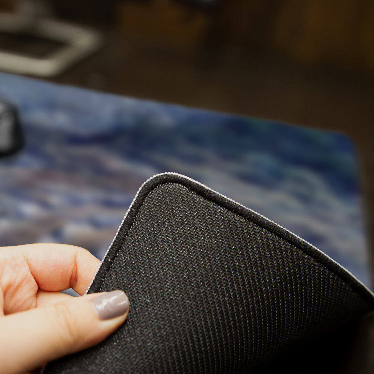 Need a new mousepad that features quality craftsmanship and creativity? Then you’ve definitely come to the right place. Our mousepads are made in-house with premium materials and unique artwork that give your battlestation the supreme look and feel that it deserves. The top is made from sleek polyester, which enables faster, more precise mouse movements. This enhanced speed and precision come in handy whether you’re working or gaming. On the bottom, there’s a strong anti-slip rubber backing that holds a nice, tight grip on your desk while you’re doing your thing. The action and traction this pad provides give you a better overall experience in completing daily tasks, deadlines, and missions of all kinds. And because we’ve added more sizing options to it, you no longer have to worry about running out of room at the worst moments either. The sizes are Classic, Large, and XL. The Classic mousepad has unstitched edges. However, the Large mousepad does include stitched edging, while the XL mousepad has both a stitched or unstitched edging option available. You can see the approximate measurements of all those sizes in the details below. We think you’ll be impressed…if you aren’t already!