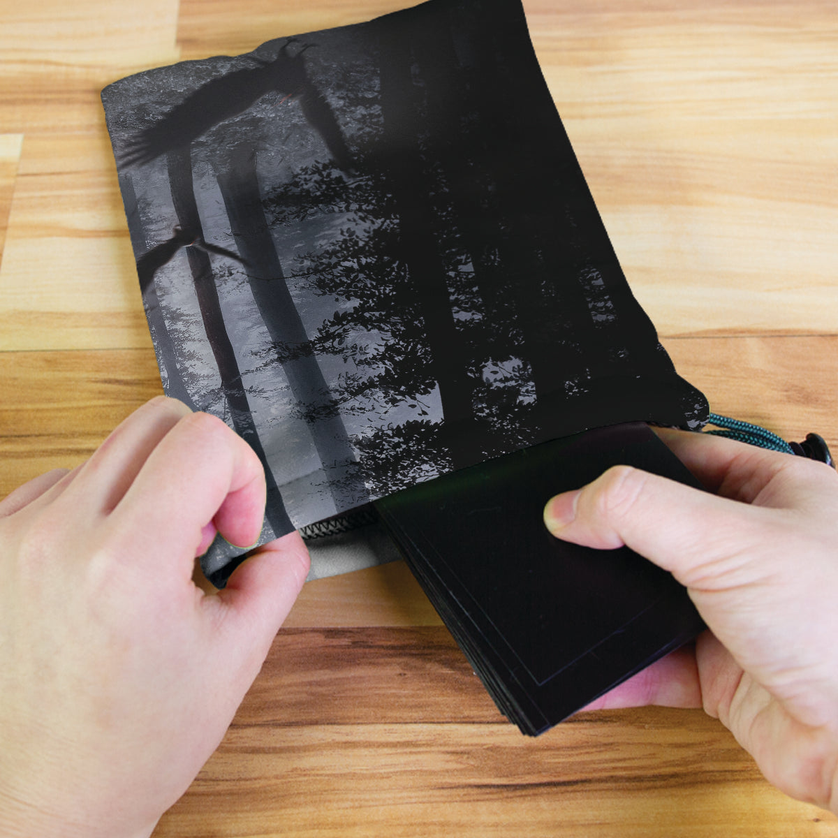 Always gaming on the go? Carry everything you need and more using our specially crafted dice bag. But this bag is designed to hold more than just dice. We make it so you can carry other essential accessories and gear with your dice, including deck boxes, life counters, extra sleeves, and pens. Quality is just as important as quantity, which is why our dice bags are crafted using premium material as well. Featuring a soft inner lining and microfiber on the inside and vibrant pre-designed artwork on the outside, our dice bag has an amazing look and feel to it!