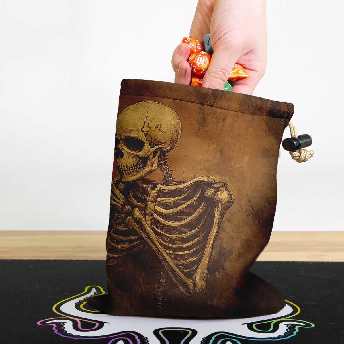 Always gaming on the go? Carry everything you need and more using our specially crafted dice bag. But this bag is designed to hold more than just dice. We make it so you can carry other essential accessories and gear with your dice, including deck boxes, life counters, extra sleeves, and pens. Quality is just as important as quantity, which is why our dice bags are crafted using premium material as well. Featuring a soft inner lining and microfiber on the inside and vibrant pre-designed artwork on the outside, our dice bag has an amazing look and feel to it!