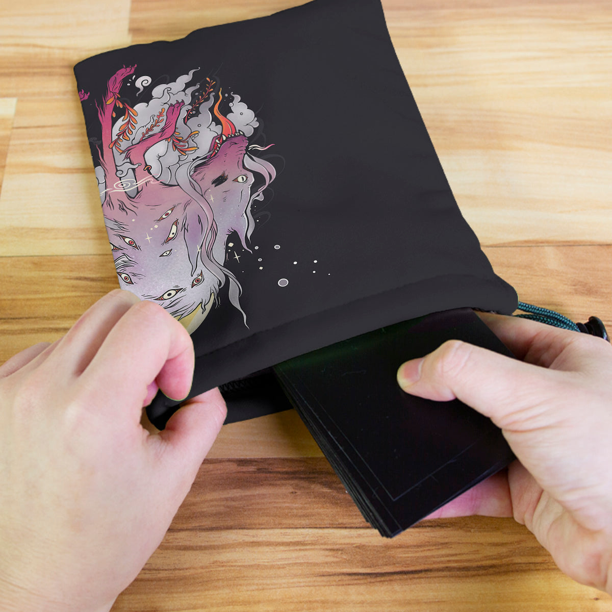 CellsdividingAlways gaming on the go? Carry everything you need and more using our specially crafted dice bag. But this bag is designed to hold more than just dice. We make it so you can carry other essential accessories and gear with your dice, including deck boxes, life counters, extra sleeves, and pens. Quality is just as important as quantity, which is why our dice bags are crafted using premium material as well. Featuring a soft inner lining and microfiber on the inside and vibrant pre-designed artwork on the outside, our dice bag has an amazing look and feel to it!