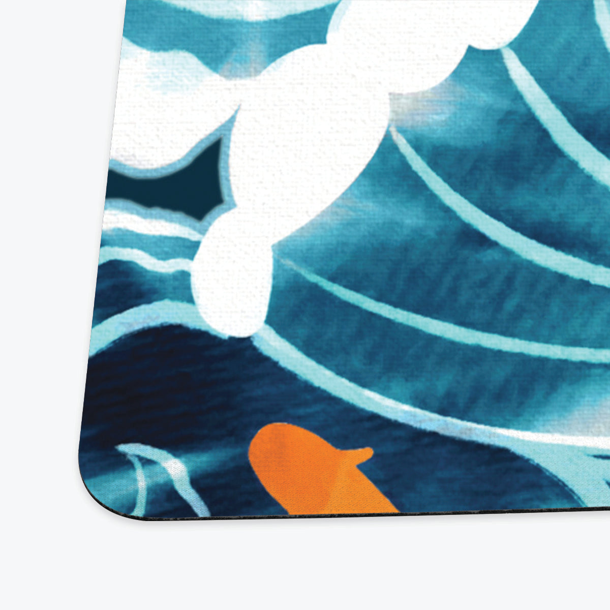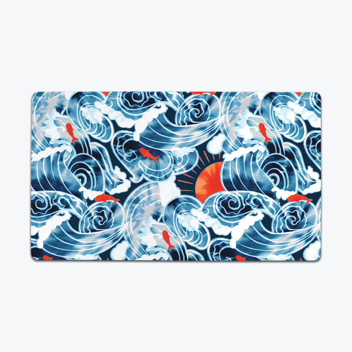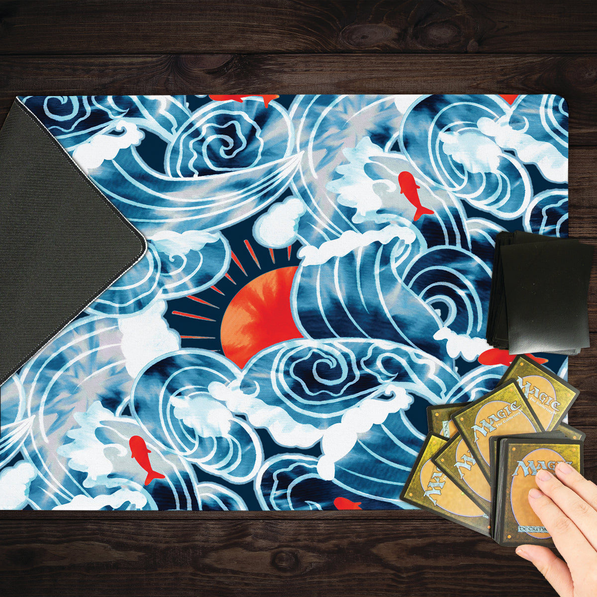 Standard Playmat measures at 24” x 14” inches and is 1/16 of an inch thick. It’s made with a smooth cloth top and strong rubber backing.